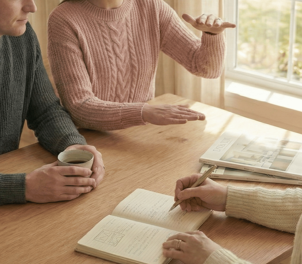 We’ll start with curiosity—your routines, preferences, pain points, and what success looks like for you. We’ll explore visuals to refine your aesthetic direction and establish a foundation for the design ahead. Together, we’ll clarify scope, priorities, timeline realities, and budget parameters, then map the key milestones so the process feels calm and clear.